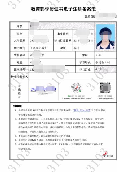 (3)《教育部学历证书电子注册备案表》(往届生提供,样张见附件2);