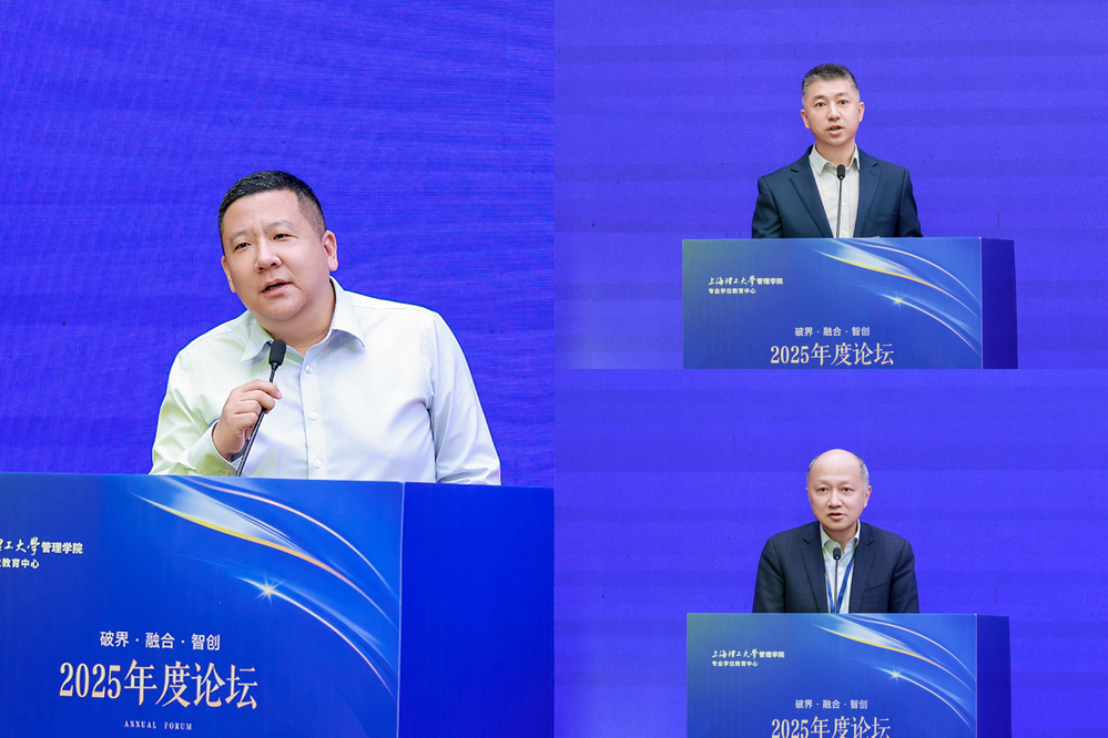 12月12日下午,上海理工大学管理学院在军工路校区举办“破界·融合·智创 共筑产教融合新生态”2025年度论坛。校党委书记王凌宇,规划发展处处长宇振盛,校友工作联络处处长曲德强,研究生院副院长郑继红,霍尼韦尔(中国)总裁余锋校友,经纬创投合伙人、黄浦区政协委员唐磊校友,上海联创投资管理合伙人朱一凡,上海国创投资有限公司董事长、上海蓝丝带公益基金会理事长白俊平校友,管理学院党政领导等出席活动。论坛吸引近200名师生与校友代表现场参会,另有两万余人次线上同步观看直播。开幕式由管理学院党委书记马静波主持。