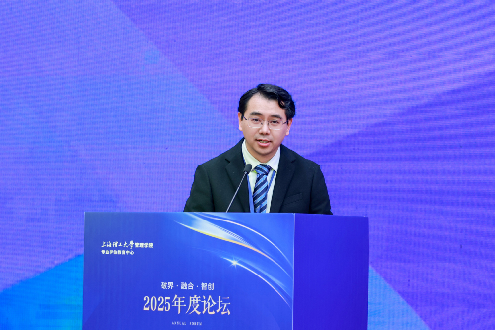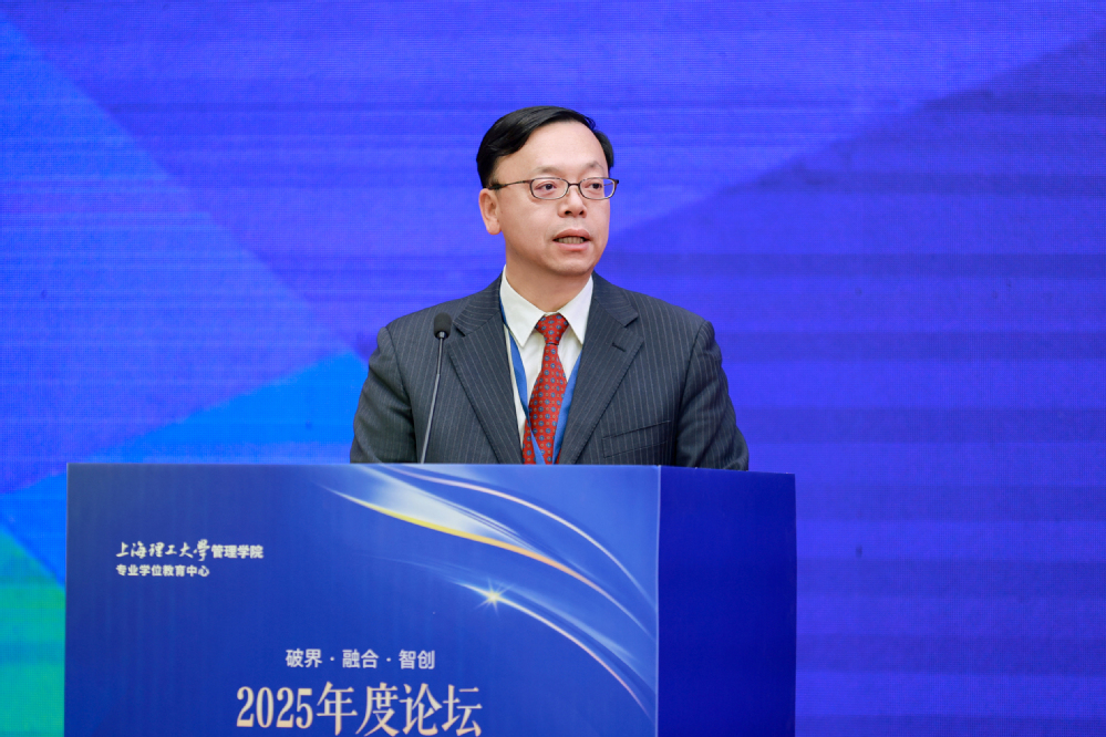 管理学院院长赵来军代表学院作2025年度产教融合专题报告。他表示,学院积极响应学校综合改革部署,确立了“系统+科技+商学”育人新定位,构建了“AI-SMART”五阶递进式人才培养模式,通过共建“随产而动”的课程体系、打造沉浸式场景教学、汇聚学界业界“双师”资源、搭建价值共生赋能平台等多元路径,形成了特色鲜明的“上理管院模式”。学院紧扣产业前沿动态,在低空经济新赛道设立人才培训基地,并与多家金融机构共建特色班级与实训平台。相关举措有效提升了人才培养质量与社会服务能力。未来,学院将进一步深化“校-企-研”闭环机制,拓展国际合作,以AI为驱动,重塑商科人才培养链路,为学校实现“十五五”规划目标、奋力迈向“双一流”贡献管院智慧。
